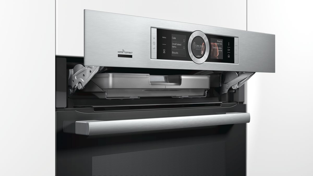 Добавление правильного количества пара в точно определенный момент гарантирует прекрасно выпеченный хлеб. Благодаря паре пища не высыхает, приобретает вкусной хрустящей корочки, а хлеб удается рыхлым внутри. Кроме того, запекания или разогрева блюд с добавлением пары придает им еще более утонченного вкуса. Просто залейте воду в контейнер, незаметно встроенный в панель управления, поднимающейся в духовых шкафах серии 8. Функция добавления пары контролируется автоматически.