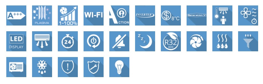 - Step-less Fan Control - уникальная технология плавной регулировки скорости вентилятора внутреннего блока в широком диапазоне от 1 до 100%;
