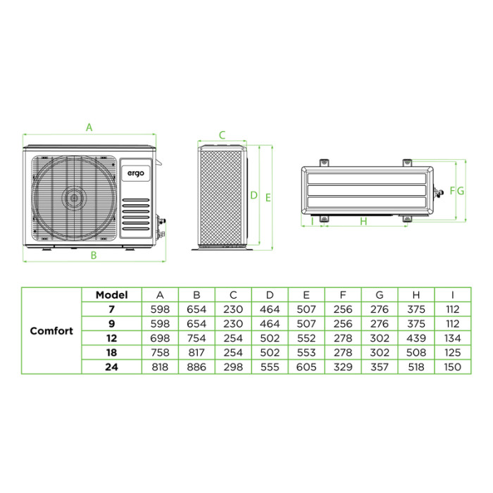 Кондиционеры ERGO серии COMFORT представлены 3 моделями: