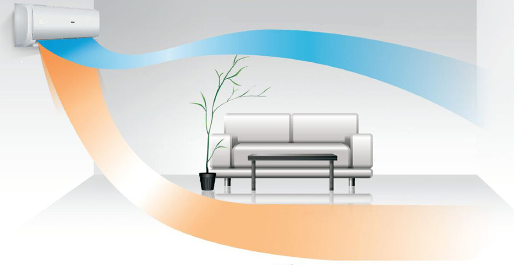 В зависимости от режима кондиционер автоматически меняет направление потока, распределяя охлажденный воздух вдоль потолка, а подогретый – в зону пола.
