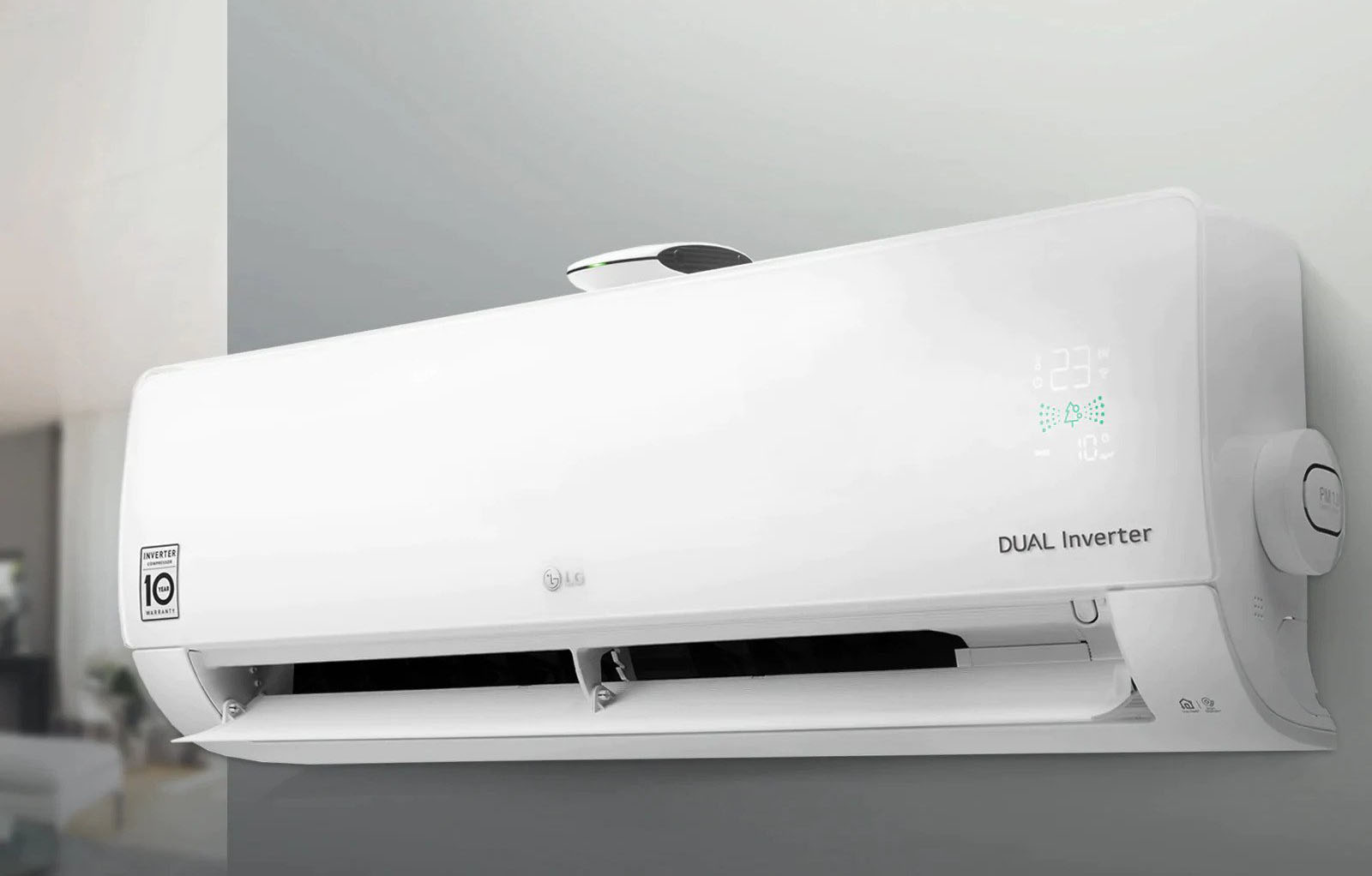 Инверторный компрессор постоянно регулирует свою скорость работы для поддержания оптимальной температуры в помещении. Технология Dual Inverter экономит больше электроэнергии, нежели обычный компрессор.