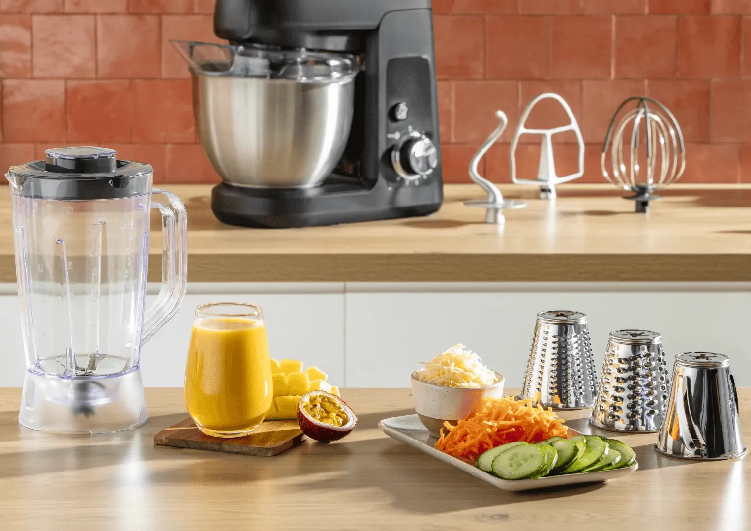 Tefal Bake Partner - помощник, который сделает процесс выпечки и готовки комфортным и обогатит ваши творческие возможности на кухне благодаря разнообразным дополнительным аксессуарам. Смешивать, взбивать, замешивать, шинковать, измельчать - для Tefal QB522838 нет невозможных задач!
