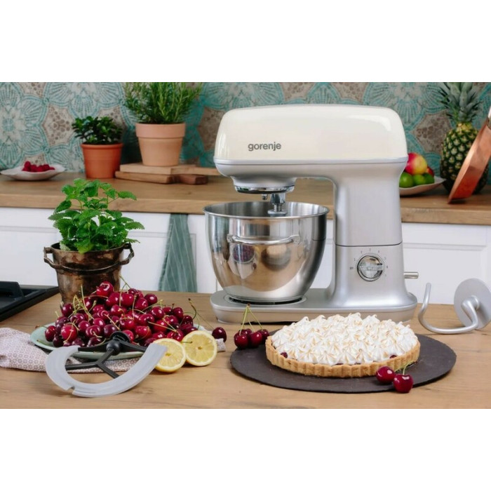 Смешивание, взбивание и вымешивание. Комплектация кухонной машины включает крюк для вымешивания теста, венчик, лопатку для смешивания и инновационную гибкую насадку. Венчик поможет в считанные минуты взбить сливки и белки в пену, крюк для теста справляется с самым тугим тестом, а лопатка используется для смешивания ингредиентов до легких, воздушных текстур, например, кремов и соусов.