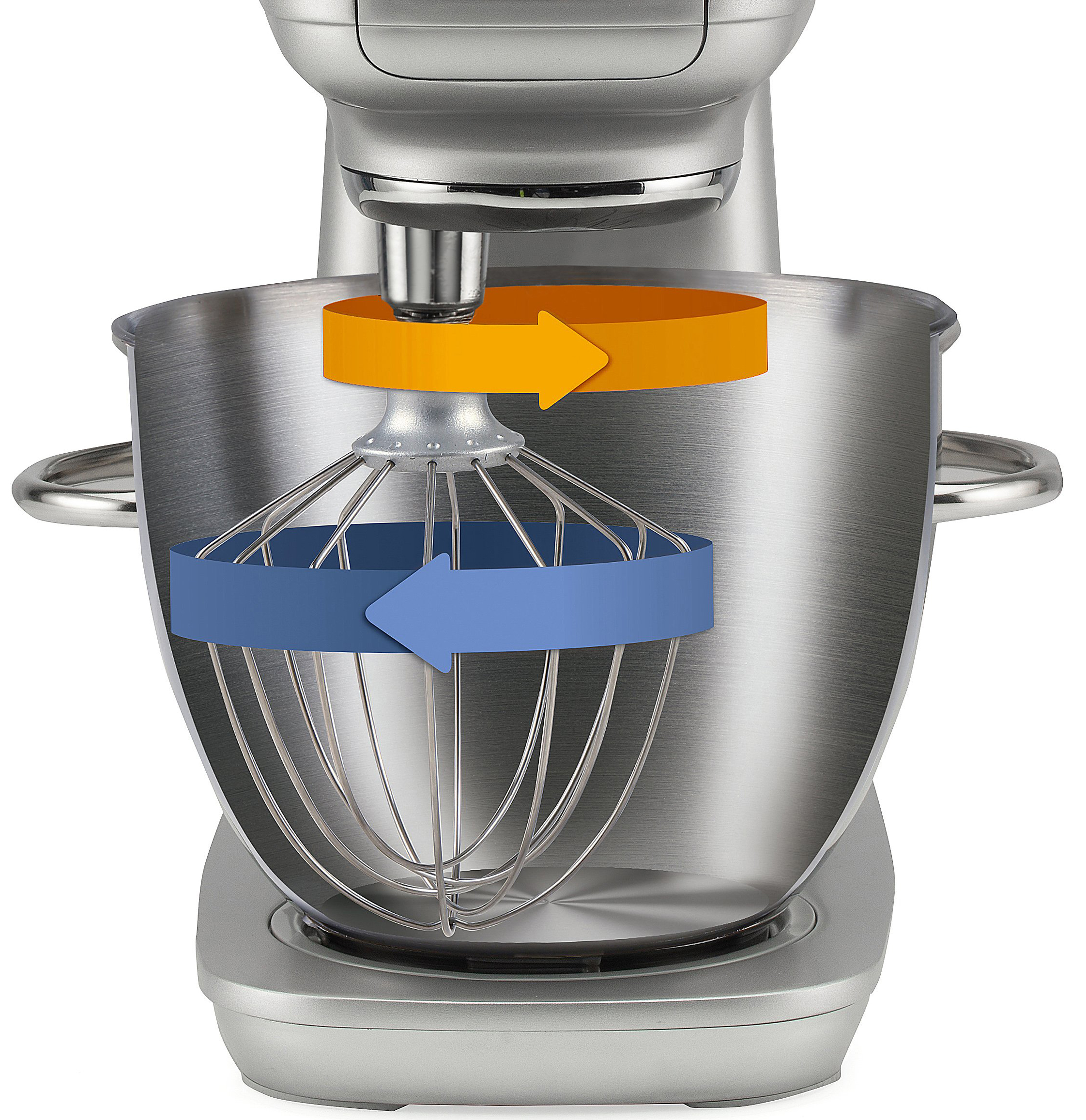 Насадка движется по внутреннему объему чаши и одновременно вращается вокруг своей оси, но в обратном направлении. Это обеспечивает тщательное и равномерное перемешивание ингредиентов. Воздух остается в тесте, делая его мягким и воздушным. Все, что вам нужно сделать, это выбрать правильную насадку для вашего рецепта и произвести впечатление на гостей великолепными результатами.