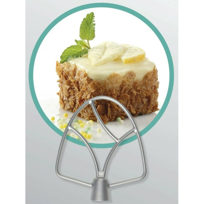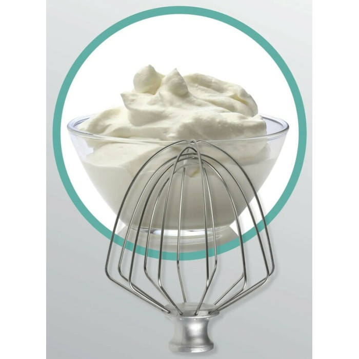 Смешивание, взбивание и вымешивание. Комплектация кухонной машины включает крюк для вымешивания теста, венчик и лопатку для смешивания. Венчик поможет в считанные минуты взбить сливки и белки в пену, крюк для теста справляется с самым тугим тестом, а лопатка используется для смешивания ингредиентов до легких, воздушных текстур, например, кремов и соусов.