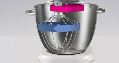 Насадка движется по внутреннему объему чаши и одновременно вращается вокруг своей оси, но в обратном направлении. Это обеспечивает тщательное и равномерное перемешивание ингредиентов. Воздух остается в тесте, делая его мягким и воздушным. Все, что вам нужно сделать, это выбрать правильную насадку для вашего рецепта и произвести впечатление на гостей великолепными результатами.