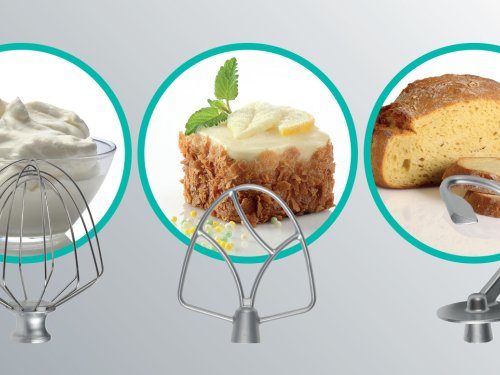 Смешивание, взбивание и вымешивание. Комплектация кухонной машины включает крюк для вымешивания теста, венчик и лопатку для смешивания. Венчик поможет в считанные минуты взбить сливки и белки в пену, крюк для теста справляется с самым тугим тестом, а лопатка используется для смешивания ингредиентов до легких, воздушных текстур, например, кремов и соусов.