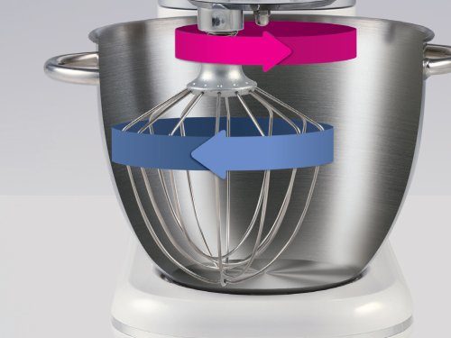 Насадка движется по внутреннему объему чаши и одновременно вращается вокруг своей оси, но в обратном направлении. Это обеспечивает тщательное и равномерное перемешивание ингредиентов. Воздух остается в тесте, делая его мягким и воздушным. Все, что вам нужно сделать, это выбрать правильную насадку для вашего рецепта и произвести впечатление на гостей великолепными результатами.