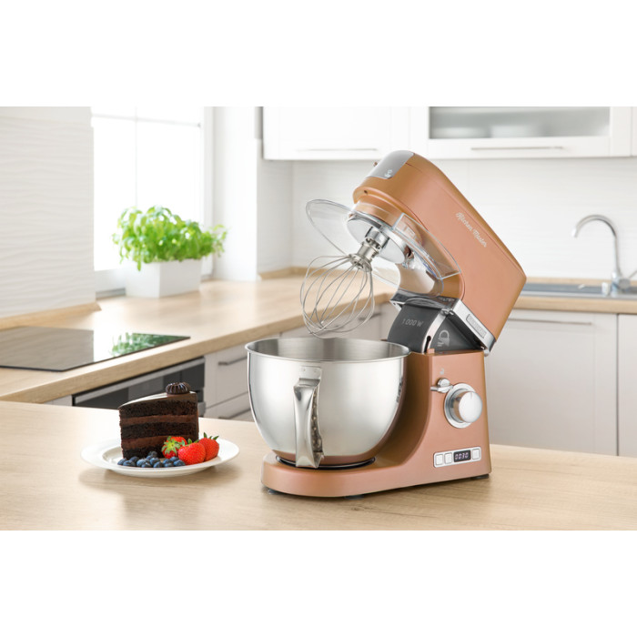 Этот кухонный комбайн станет отличным компаньоном, способным выполнять все необходимые функции. Он может замешивать, взбивать, смешивать, формовать, измельчать горячие или холодные продукты. Тем самым заменяя несколько кухонных приборов. А штыковая система крепления насадок обеспечивает быструю замену аксессуаров, что позволяет легко переключаться с одного процесса на другой.