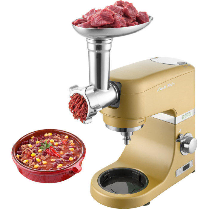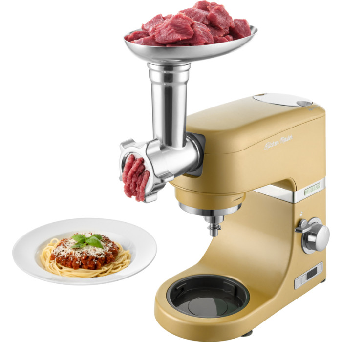 Этот кухонный комбайн станет отличным компаньоном, способным выполнять все необходимые функции. Он может замешивать, взбивать, смешивать, формовать, измельчать горячие или холодные продукты. Тем самым заменяя несколько кухонных приборов. А штыковая система крепления насадок обеспечивает быструю замену аксессуаров, что позволяет легко переключаться с одного процесса на другой.