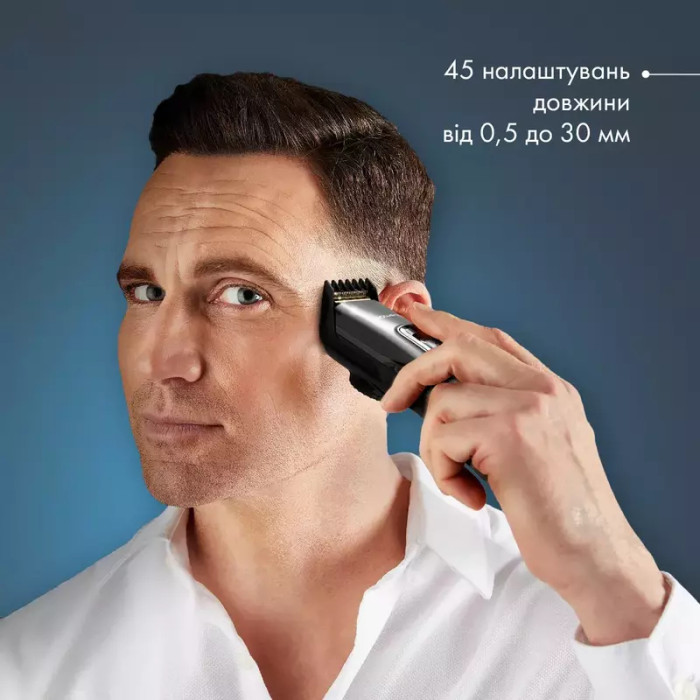 Машинка для стрижки имеет 45 настроек длины от 0,5 до 30 мм для создания вашего индивидуального стиля легко и просто.