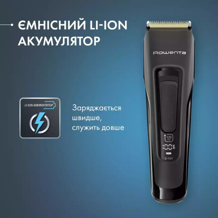 Литий-ионный аккумулятор гарантирует до 120 минут автономной работы – этого хватит на 8 полноценных стрижек без подзарядки. Функция быстрой зарядки делает устройство еще более удобным: чтобы провести одну полную стрижку, достаточно всего 11 минут зарядки. Аккумулятор полностью заряжается всего за 1 час 30 минут.