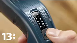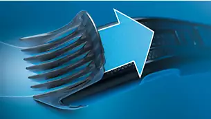 Выберите и зафиксируйте одну из 12 фиксируемых установок длины регулируемого гребня: от 1 мм до 23 мм с шагом 2 мм. Либо используйте прибор без гребня для минимальной длины 0,5 мм.