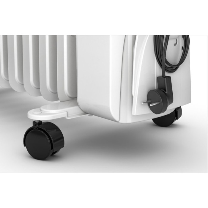 Специальная конструкция металлических элементов радиатора и боковых отверстий обеспечивает расширенное и равномерное распределение тепла. Caldorad Radiator был разработан, чтобы поддерживать заданную температуру в течение длительного времени. Практичные нецарапающиеся колеса и верхняя ручка облегчают переноску устройства.