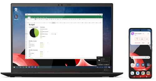 Расширьте свое мобильное рабочее пространство и наслаждайтесь бесперебойным подключением к ПК с помощью ThinkPhone. Благодаря интеграции операционных систем Android и Microsoft Windows, ваша организация может подняться на новый уровень производительности. Дважды коснитесь красной кнопки для легкой синхронизации с ThinkPad или ПК. Вы можете настроить открытие любой программы по вашему выбору одним касанием.