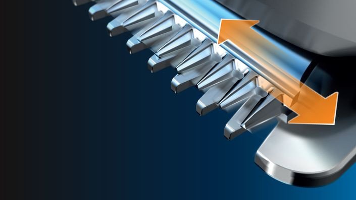 Лезвия из нержавеющей стали с двойной заточкой идеально подравнивают даже самые жесткие волоски. В процессе подравнивания лезвия самостоятельно затачиваются, слегка касаясь друг друга, поэтому им не требуется замена и смазка на протяжении всего срока службы триммера.