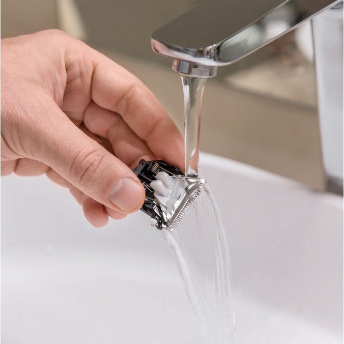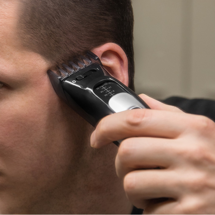 - 2 гребенчатых насадки с уникальной защелкой системы Lock-Up: Короткая насадка с длиной 3, 9, 15 и 24 мм, длинная насадка с длиной 14, 20, 26 и 35 мм