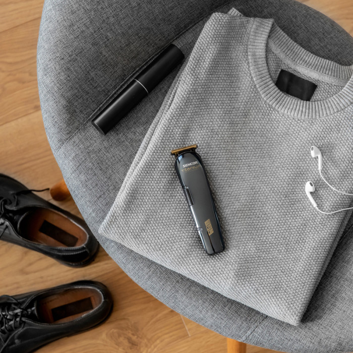 - 12 сменных насадок: Насадка для удаления волос из носа, насадка для стрижки бороды, насадка для формирования контуров, насадка для точного выравнивания, насадка полной ширины, насадка для стрижки волос 3 мм, насадка для стрижки волос 6 мм, насадка для стрижки волос 9 мм, насадка для стрижки волос 12 мм, насадка для стрижки бороды 4 мм, насадка для стрижки бороды 6 мм, насадка для стрижки бороды 8 мм