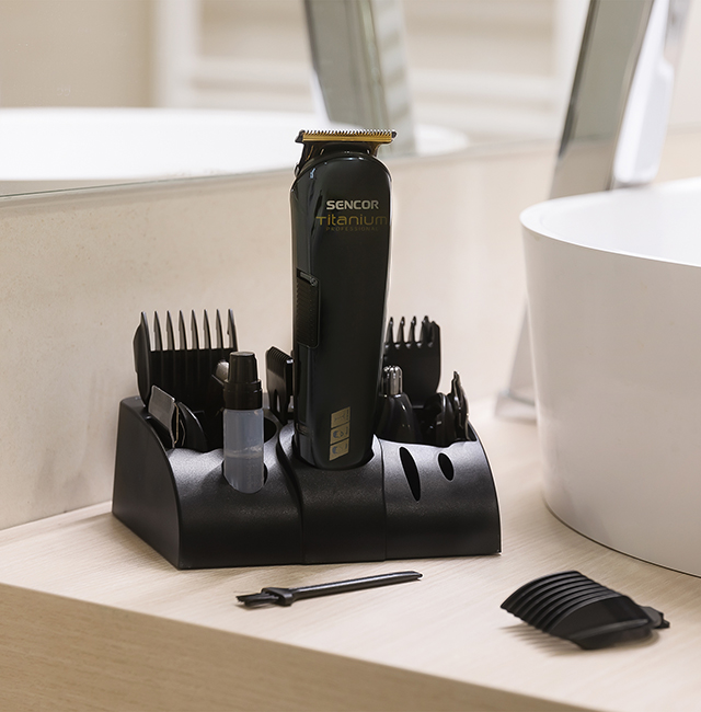 - В комплект входят принадлежности: Практичная подставка с функцией зарядки, насадка для удаления волос из носа, насадка для стрижки бороды, насадка для формирования контуров, стандартная насадка для стрижки волос, большая насадка для стрижки волос, насадка для стрижки волос (3, 6, 9, 12 мм), насадка для стрижки бороды (4, 6, 8 мм), масло, кисточка для чистки, дорожный пластмассовый футляр для удобной перевозки и хранения