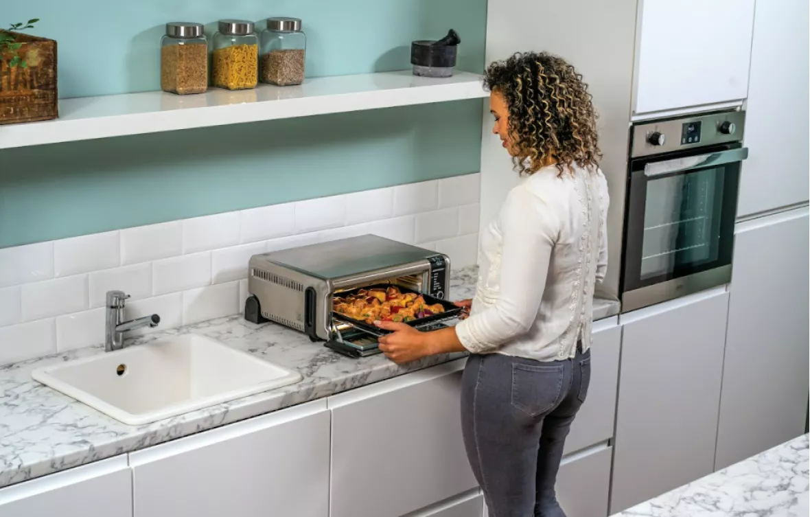 Электрическая печь Ninja сэкономит вам место на кухне, поскольку заменит духовку, тостер, гриль и жаровню, а также подойдет всем, кто хочет тратить меньше времени на приготовление пищи и разнообразить свой рацион новыми блюдами.