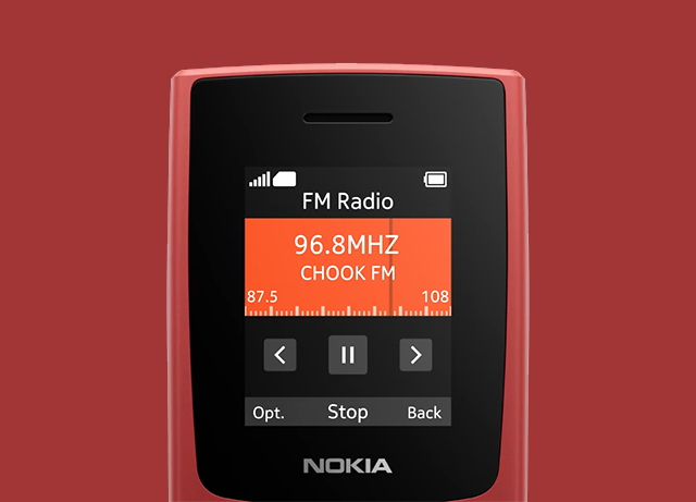 Хотите быть в курсе последних событий? С Nokia 106 это очень просто. Телефон имеет встроенное беспроводное FM-радио, которое работает как с гарнитурой, так и без нее. Благодаря этому вы можете слушать выпуски новостей во время утренней поездки на работу или наслаждаться прослушиванием любимой радиостанции дома.