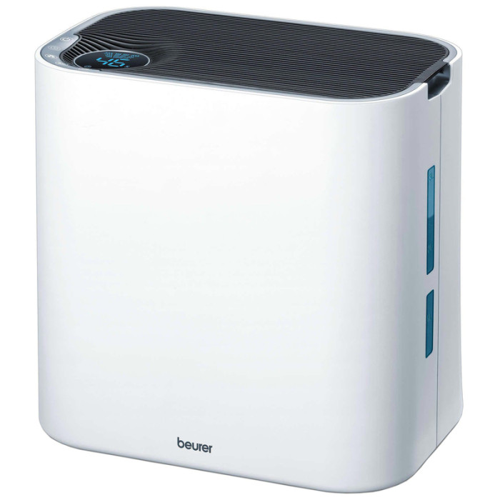 Очиститель воздуха получил встроенный гигростат, который позволяет ему определять уровень влажности в помещении и отображать его на LED дисплее. Просто задайте желаемый уровень влажности в пределах 40-80% – и Beurer LR 330 будет поддерживать его автоматически. Также в устройстве предусмотрен таймер на время от 1 до 12 часов и автоотключение при недостаточном уровне воды в контейнере.