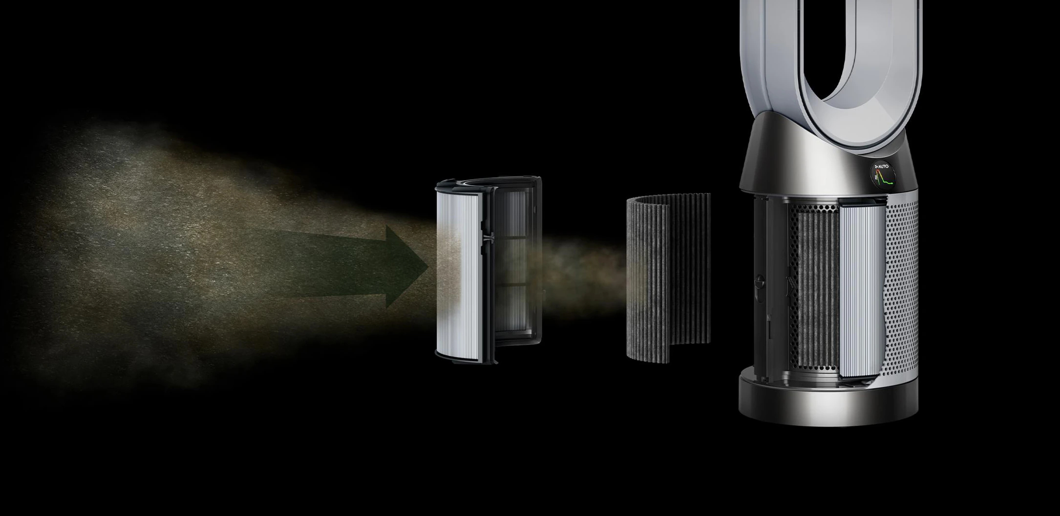 Очищувачі Dyson використовують технологію Air Multiplier™ для потужного охолодження. А завдяки герметичній фільтрації на 360° вони також затримують 99,97% алергенів і забруднюючих речовин розміром від 0,3 мікрона.