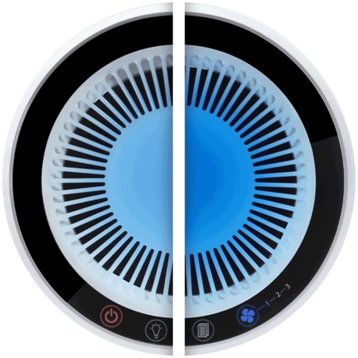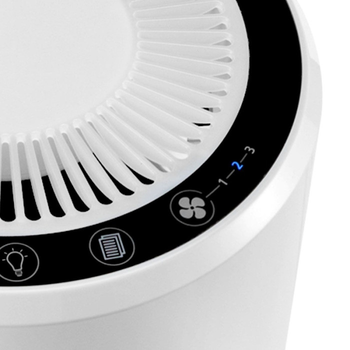 Очиститель Levoit оснащен светодиодной сенсорной панелью, на которой удобно управлять его функциями: выбирать скорость вентилятора, режим, ставить таймер и настраивать подсветку.