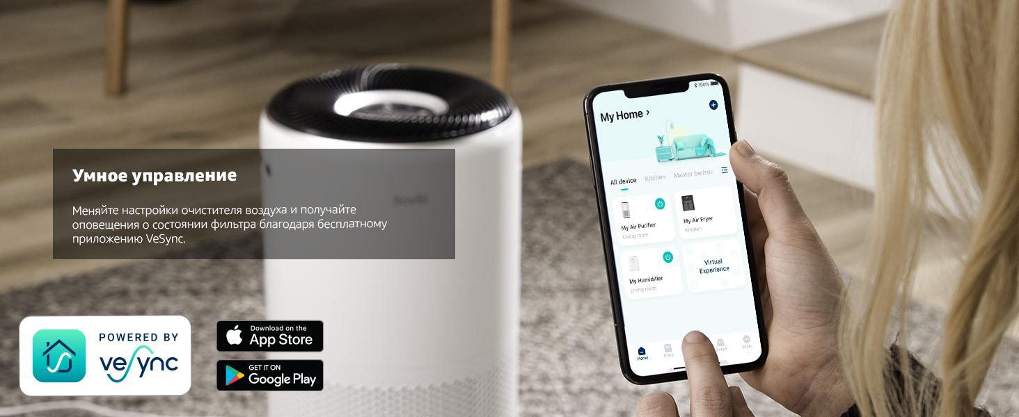 ECARF Сертификат; VortexAir™ Technology 3.0; Интеграция с Amazon Alexa, Google Assistant™; Приложение VeSync; Возможность интеграции в систему Умный дом; Очистка от аллергенов, от вирусов и бактерий, от газов и копоти, от запахов, от пыли, от пыльцы, от табачного дыма, от токсинов, от формальдегида, от шерсти животных; Управление со смартфона; QuietKEAP Technology; HEPASmart™ Technology