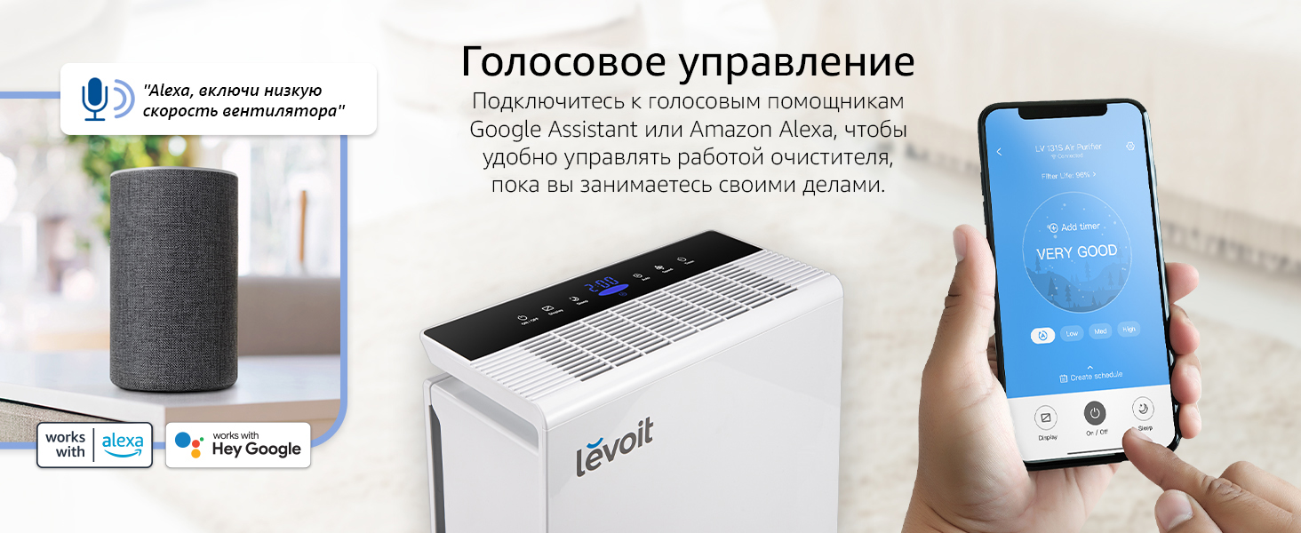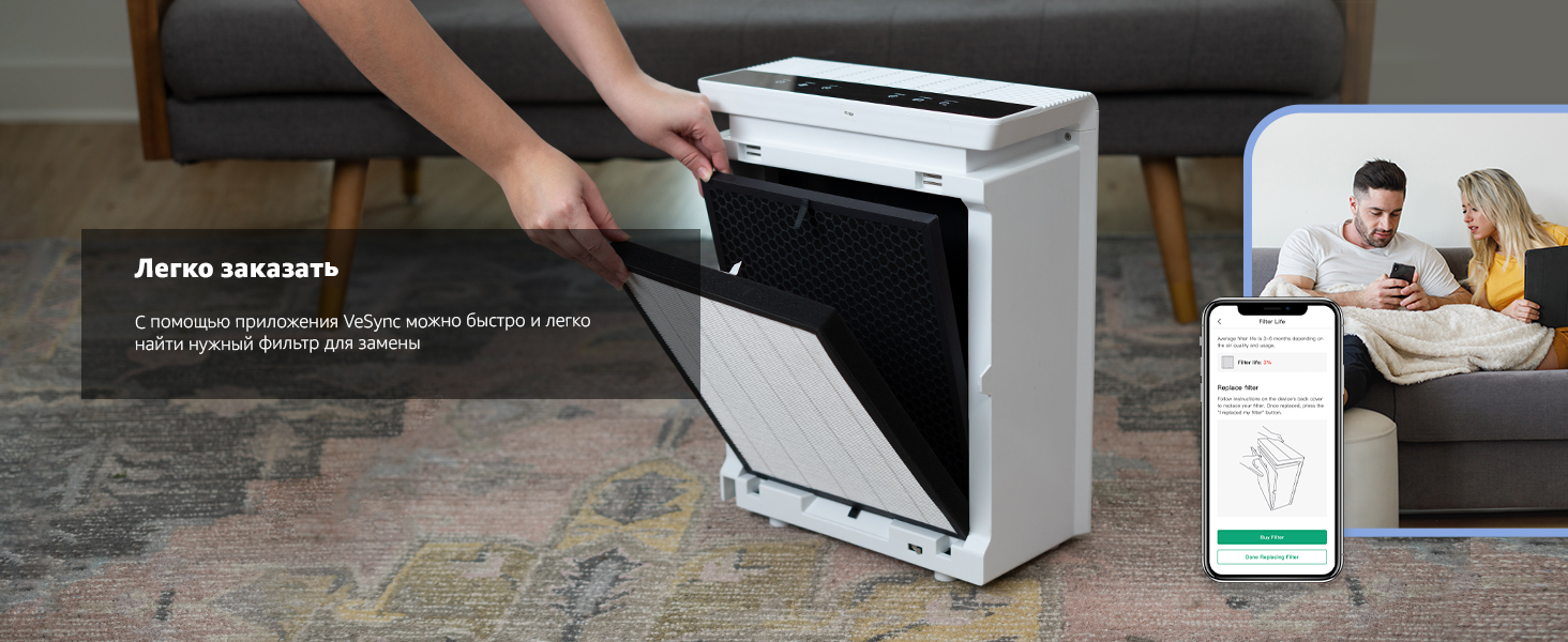 ECARF Сертификат; VortexAir™ Technology 3.0; Интеграция с Amazon Alexa, Google Assistant™; Приложение VeSync; Возможность интеграции в систему Умный дом; Очистка от аллергенов, от вирусов и бактерий, от газов и копоти, от запахов, от пыли, от пыльцы, от табачного дыма, от токсинов, от формальдегида, от шерсти животных; Управление со смартфона; QuietKEAP Technology; HEPASmart™ Technology