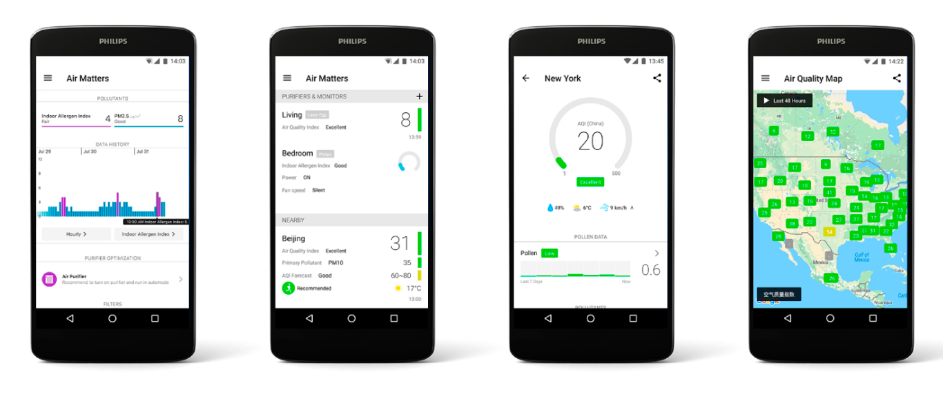 С помощью приложения вы можете управлять своим очистителем воздуха в любое время из любой точки планеты. Проверяйте качество воздуха в приложении, где бы вы ни находились, и сравнивайте качество воздуха у вас дома и на улице. С помощью приложения также можно изменять скорость работы вентилятора и проверять состояние фильтра.