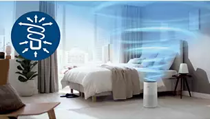 Всего одно касание кнопки — и очиститель воздуха устранит невидимые вирусы, аллергены и загрязняющие вещества, чтобы вы могли дышать чистым воздухом. Быстрая и эффективная очистка достигается благодаря высокому показателю CADR 300 м³/ч.