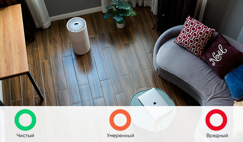 SmartMi оснащен встроенными датчиками вредных частиц – непрерывно анализирует окружающий воздух и автоматически подстраивает соответствующий режим очистки. Точный лазерный датчик обнаруживает окружающий уровень PM2,5, датчик TVOC показывает уровень концентрации вредных летучих веществ, а индикатор меняет цвета в соответствии с уровнем загрязнения воздуха в реальном времени.