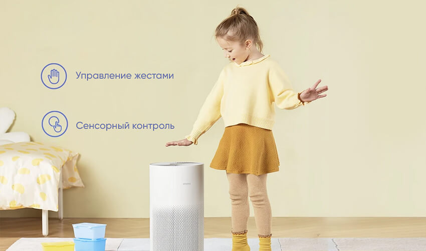 Управлять работой очистителя воздуха Xiaomi SmartMi так же просто, как дышать. Устройство распознает жесты – нет ничего проще, чем интуитивное управление. Кроме того, вы сможет управлять касанием при помощи сенсорного дисплея, удаленно через приложение Mi-Home и голосом через Google-ассистента или Alexa.