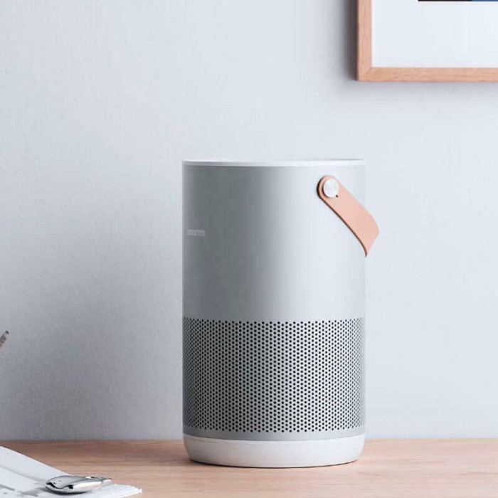 При выборе техники для дома, внешний вид также играет важную роль, ведь она часто находится на виду. Очиститель воздуха выполнен в цилиндрическом корпусе с минимумом деталей, благодаря чему органично впишется в современный интерьер. А кожаная ручка добавляет в дизайн устройства особую изюминку и дает возможность легко переносить его по квартире или дому.