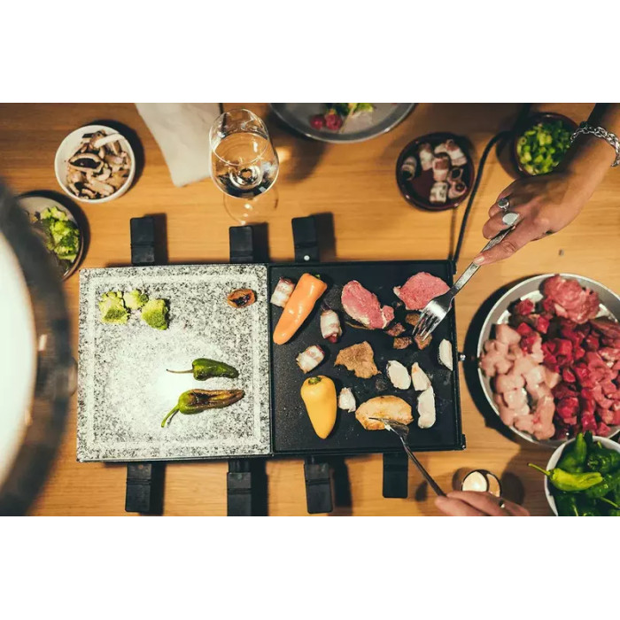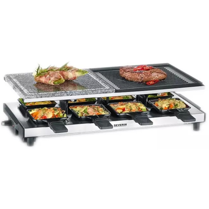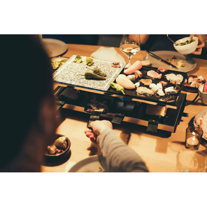 Раклетница-гриль; Инструкция; Гарантийный талон; Лоток для сбора жира; 8 раклетниц