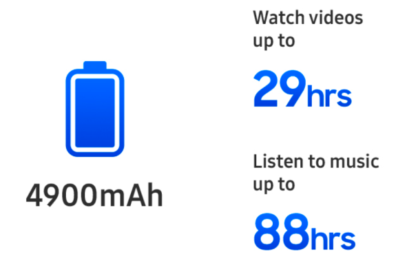 8. У порівнянні з Galaxy S23.11. Фактичний час роботи від акумулятора залежить від мережевого середовища, використовуваних функцій і застосунків, частоти викликів і повідомлень, кількості заряджань та багатьох інших чинників. Приблизна оцінка проти профілю використання середнього користувача за даними UX Connect Research. Незалежне оцінювання UX Connect Research проводилось у період із 25 листопада до 15 грудня 2023 р. у США та Великій Британії з передсерійними версіями SM-S921 і SM-S926 з налаштуваннями за замовчуванням із використанням мереж LTE й 5G Sub6. У мережі 5G mmWave тестування НЕ проводилось.12. Типове значення, визначене під час тестування у сторонній лабораторії. Типове значення є приблизним середнім значенням з урахуванням відхилень ємності акумулятора серед зразків акумуляторів, які було протестовано за стандартом IEC 61960. Номінальна ємність для Galaxy S24 становить 3880 мА·год і Galaxy S24+ – 4755 мА·год. Фактичний час роботи від акумулятора залежить від мережі, способу використання та інших чинників.13. За результатами тестування у власній лабораторії Samsung із використанням передрелізної версії відповідної моделі, підключеної до навушників через Bluetooth зі стандартними налаштуваннями LTE. Орієнтовне значення з урахуванням ємності акумулятора, виміряної напруги та рівня споживання заряду під час відтворення відео (файлів із роздільною здатністю 720p, збережених на пристрої) та аудіо (файл mp3, 192 кбіт/с, збережений на пристрої, із вимкненим LCD-дисплеєм). Фактичний час відтворення відео та аудіо залежить від підключення до мережі, налаштувань, формату файлу, яскравості екрана, стану акумулятора й багатьох інших чинників.