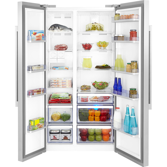 Beko GN163120X – это холодильник Side-by-side с большой вместимостью и массой умных решений, делающих жизнь легче. Благодаря технологии Active Fresh Blue Light™ и специальной зоне свежести он создает оптимальные условия для хранения любых продуктов – от зелени до рыбы и мяса. Активный ионизатор IonGuard устраняет бактерии и неприятный запах, цифровой дисплей позволяет легко контролировать температуру как в холодильной, так и морозильной камерах, а интеллектуальный режим отпуска и класс энергопотребления A+ позволяют экономить на счетах за электричество. Что делает холодильник максимально эффективным помощником на вашей кухне.