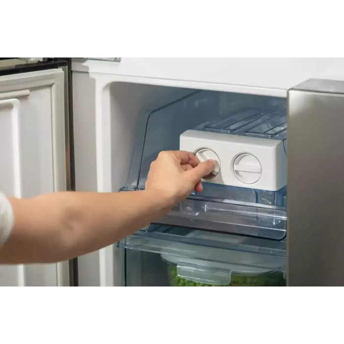 Одна из лучших систем охлаждения на рынке, установленная в морозильной камере. Наиболее эффективно предотвращает накопление льда. Как результат, вам не нужно будет размораживать внутреннюю часть морозильной камеры, и ее емкость используется более эффективно. Упаковка или кусочки замороженной пищи не будут прилипать друг к другу, а морозильная камера останется аккуратной и опрятной.