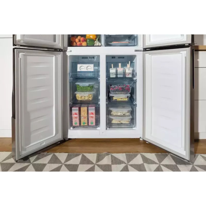 Эффективно спроектированный интерьер содержит достаточно места для большего количества пищи, экономя вас от частых путешествий по магазинам. Еда может быть легко организована на стеклянных полках, в больших ящиках или в отсеках на внутренней стенке двери, то есть всегда можно увидеть, что уже есть в наличии.