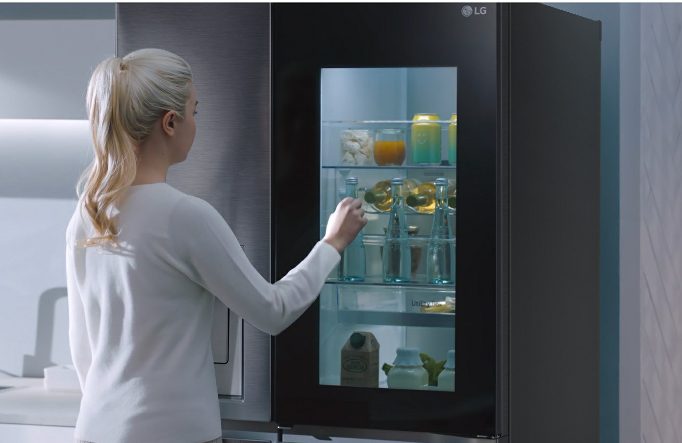 Передняя панель дополнительной секции сделана из зеркального стекла, которое становится прозрачным, если по нему постучать дважды. Это позволяет проверять наличие продуктов, даже не открывая дверцу, тем самым, препятствуя выходу холодного воздуха из основной камеры.