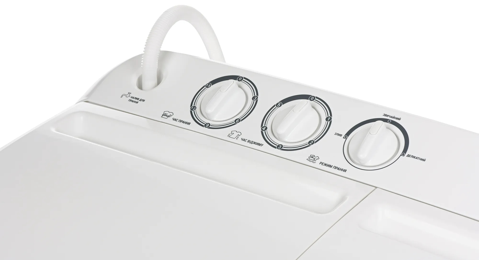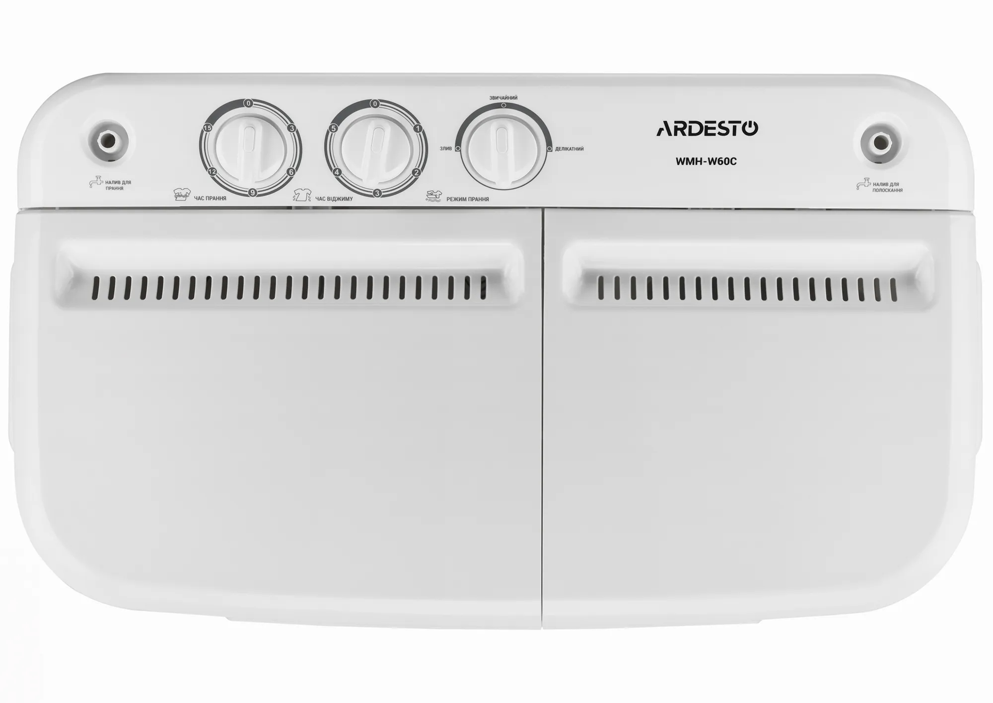 Корпус и крышка стиральной машины WMH-W60C выполнены из прочного поликарбоната белого цвета. Все внутренние компоненты надежно изолированы от контакта с водой. Устройство соответствует II классу защиты от поражения током.