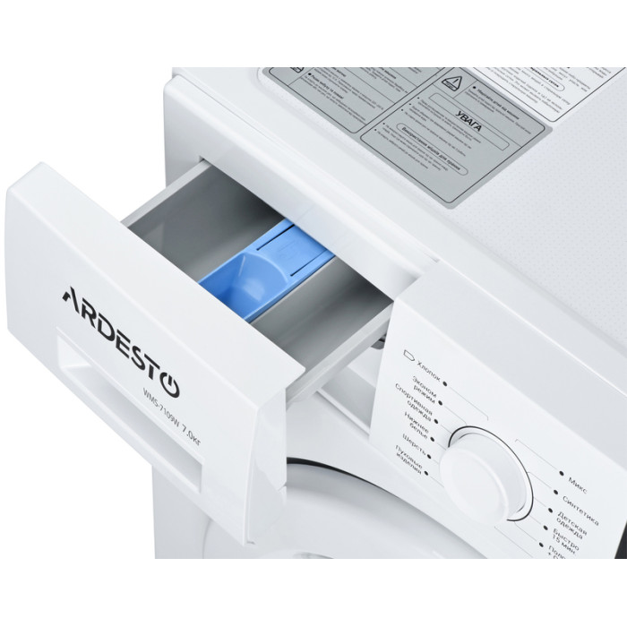 Автоматическая стиральная машина с фронтальной загрузкой белья, встроенным дисплеем и увеличенным иллюминатором белого цвета. Ardesto WMS-7109W рассчитана на загрузку 7 кг белья. Максимальная скорость отжима достигает 1000 оборотов в минуту, а класс энергосбережения – A++.