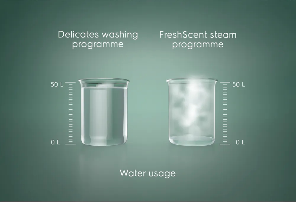 Приятное ощущение свежевыстиранной одежды при куда меньшем расходе воды. Освежив любимые вещи паром, вы сбережете более 40 л воды за цикл и удлините срок службы одежды. А для дополнительного импульса свежести просто добавьте ароматизатор.