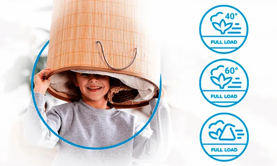Предназначен для циклов стирки при 20°C, обеспечивает эффективную стирку при низких температурах, снижает потребление эл. энергии, затраты и создает благоприятные условия для окружающей среды.