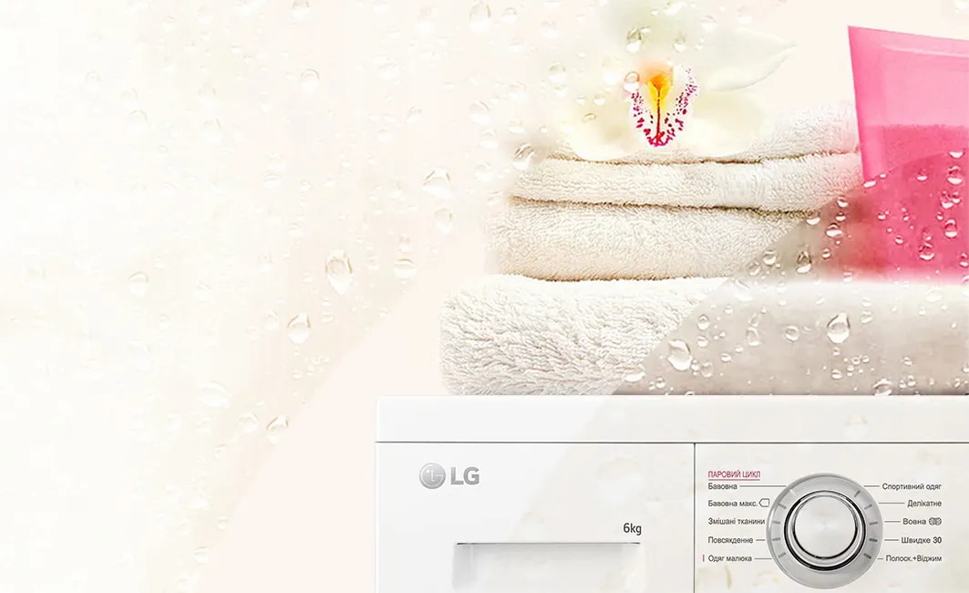 Стиральная машина LG оснащена функцией стирки паром Steam™, работающей на программе «Одежда малыша+Пар». Благодаря такой обработке уничтожаются источники бытовой аллергии, вещи становятся более мягкими на ощупь.