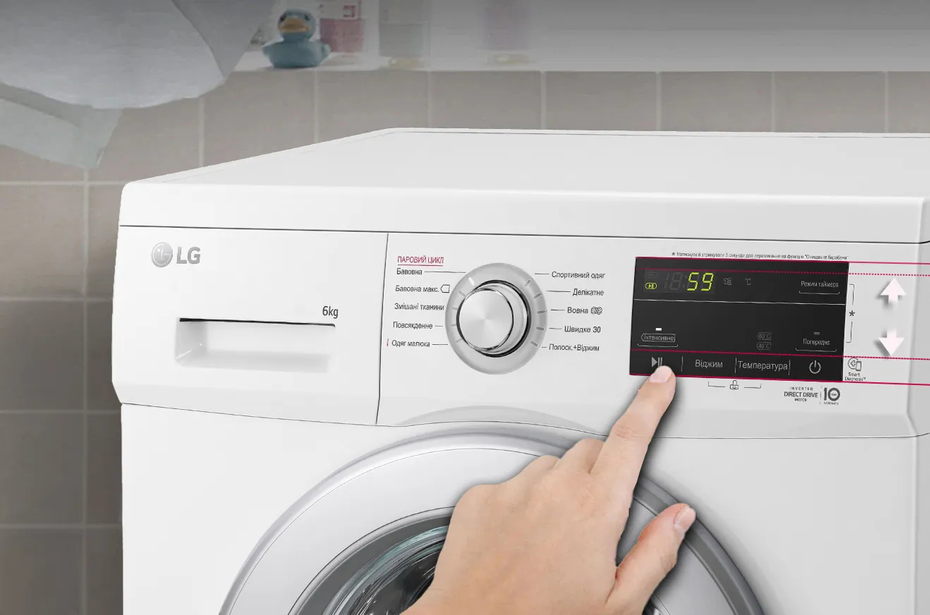 Облегченное управление стиральной машиной LG достигается благодаря обновленной сенсорной панели с увеличенным размером, установленной под оптимальным углом для максимального удобства использования.