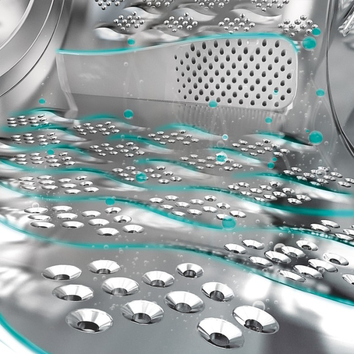 Новая волновая перфорация барабана в сочетании с особой волнообразной формой 3D-ребер смягчает волокна, что обеспечивает более бережный уход за одеждой, позволяет добиться безупречного качества стирки и свести к минимуму образование складок.
