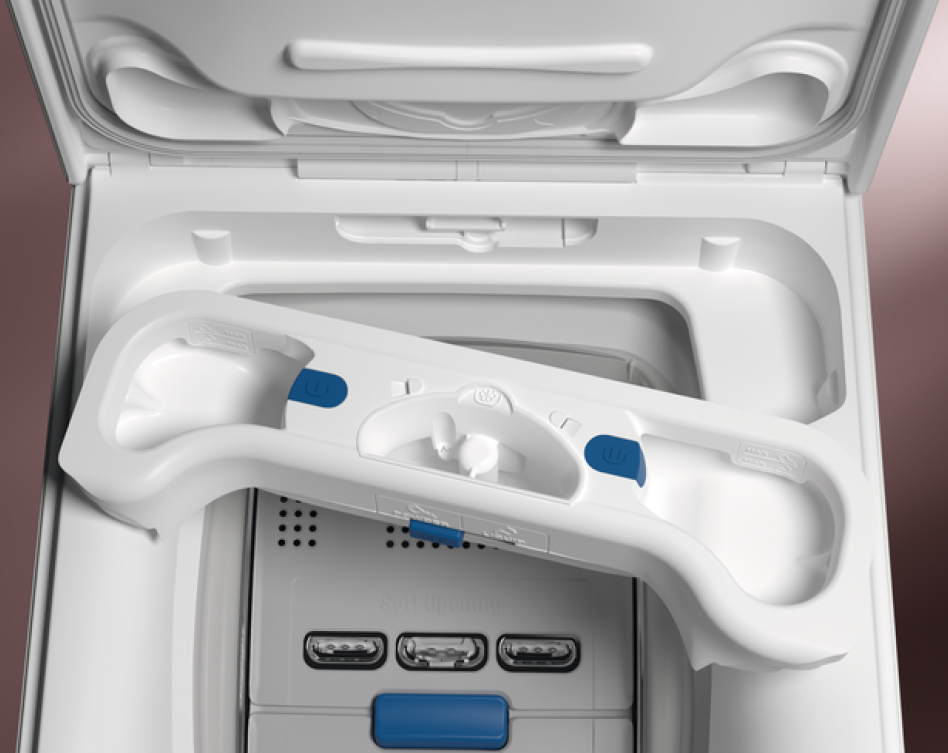 Система мягкого открывания упрощает загрузку и выгрузку белья. Крышка с нажимной кнопкой и мягкие внутренние дверцы барабана облегчают и упрощают доступ. Верхнее позиционирование отверстия обеспечивает удобный обзор содержимого.