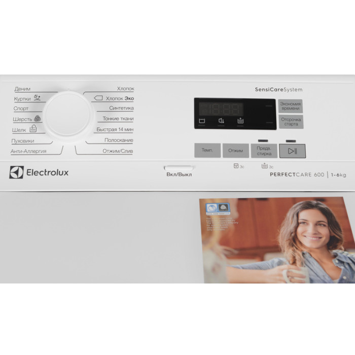 Система SensiCare взвешивает каждую загрузку белья и корректирует цикл, точно выбирая длительность стирки. Это позволяет избежать перестирывания и помогает вещам сохранить вид и форму.
